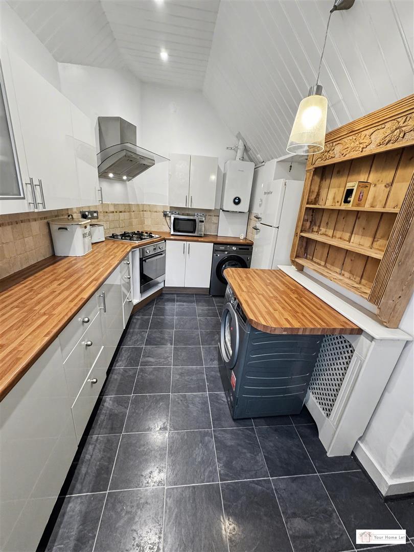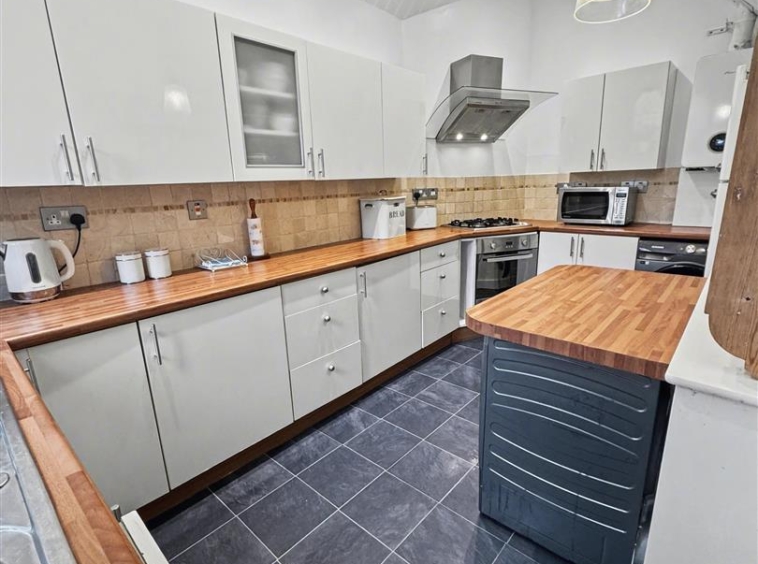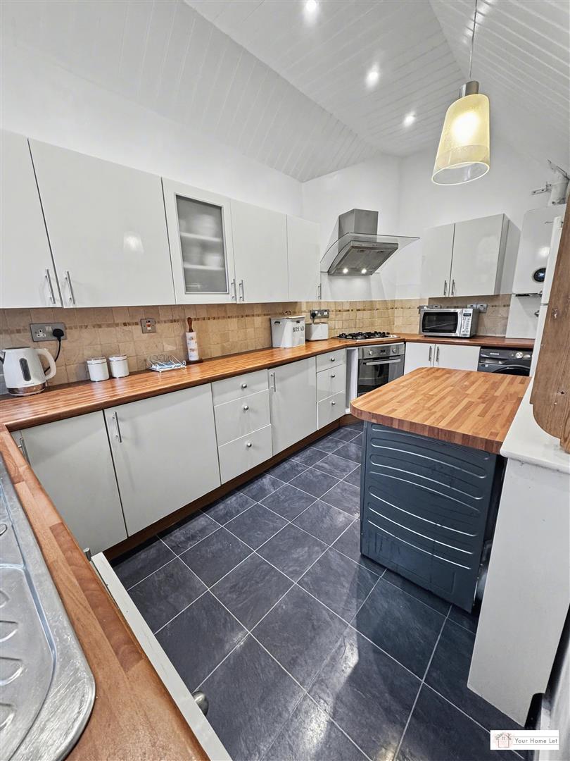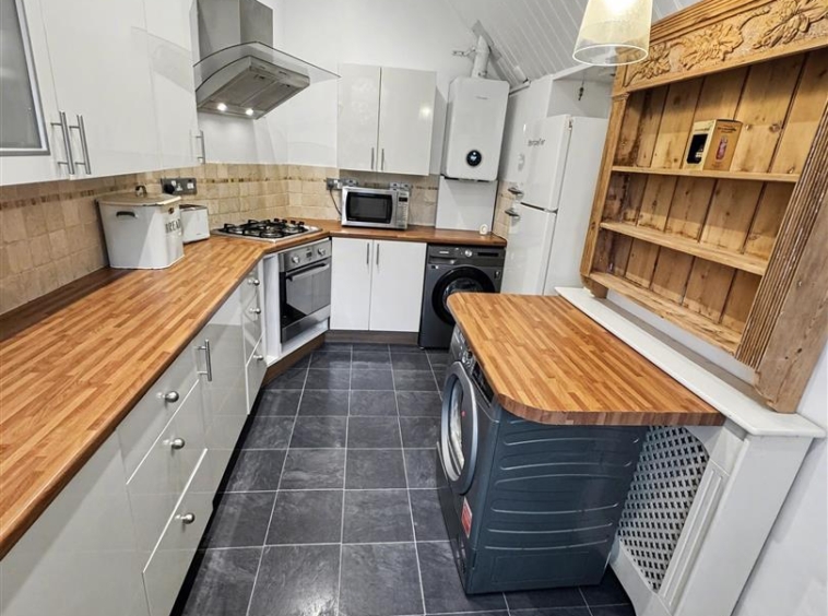 Kitchen 14′ 7″ x 7′ 4″ (4.45m x 2.26m) Fully equiped with integrated dish washer, fridge & freezer, washing machine, stainless steel gas hob with extractor over and electric oven, leaded window overlooking the courtyard garden, vaulted ceiling, central heating boiler, door to exterior.
