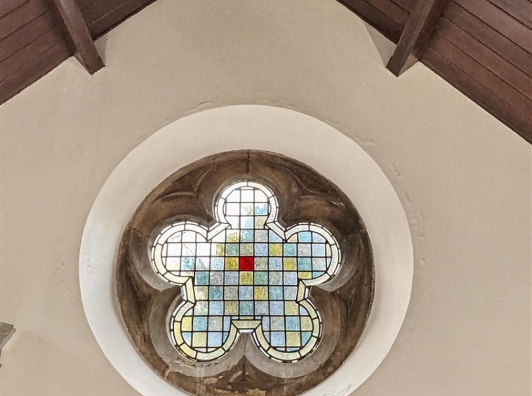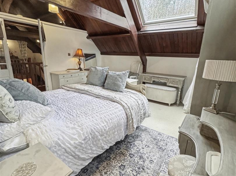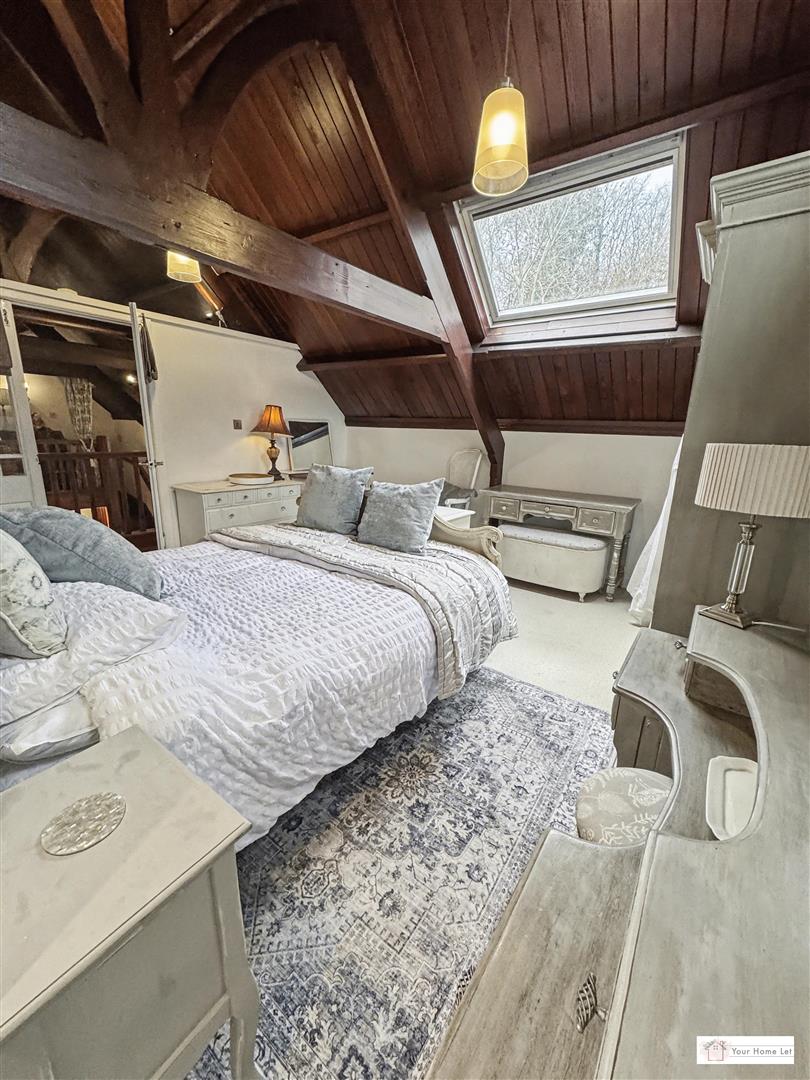 Bedroom 1 13′ 1″ x 13′ 7″ (4.0m x 4.16m) An open plan room to the en suite with leaded window to side & delightful leaded & stained glass porthole window to front, vaulted ceiling.