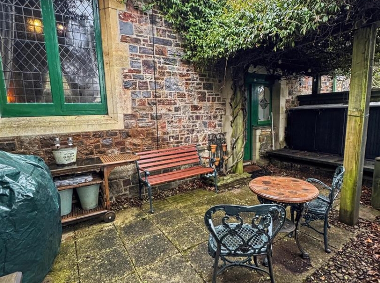 Exterior: The property has a private front area which is gravelled with an area at side suitable for parking. A path at side leads around to the back of the house. There is a private, pretty courtyard garden approached off the hallway.