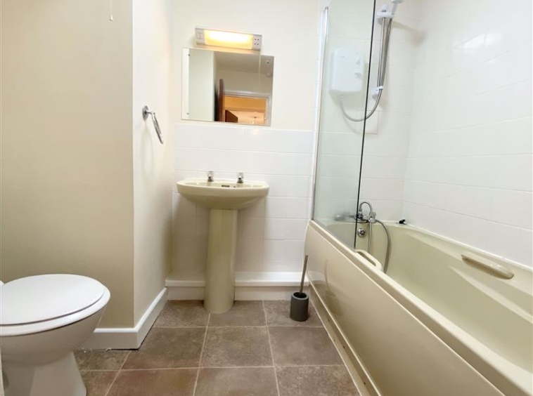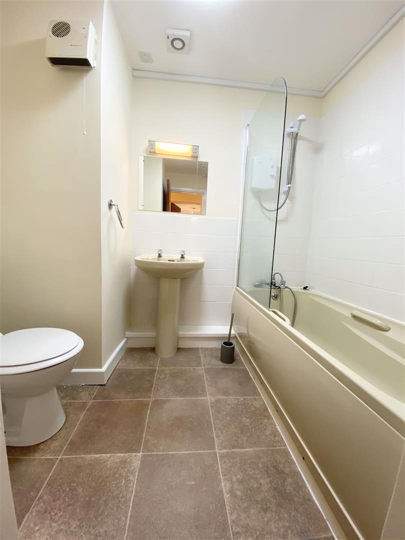The bathroom includes a bath with shower over, offering practical everyday convenience.
