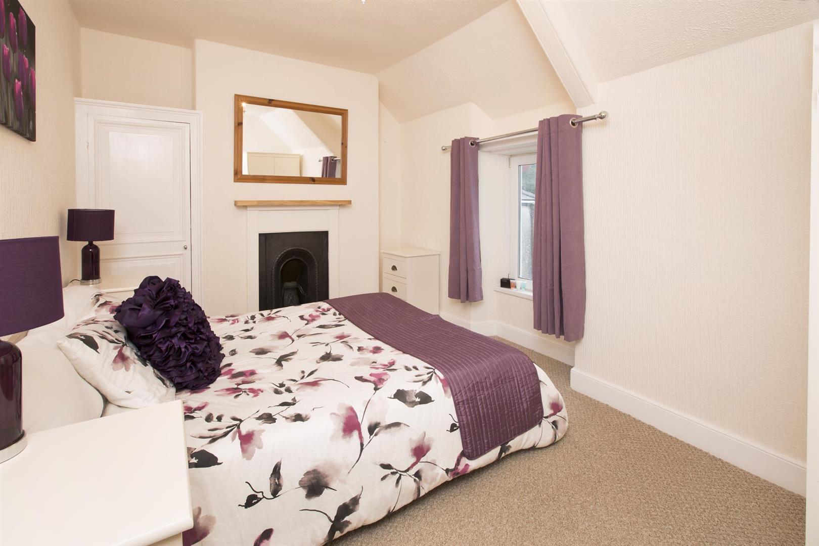 The bedroom has blinds, double bed & mattress with headboard, built in wardrobe & 2 x bedside chest of drawers.