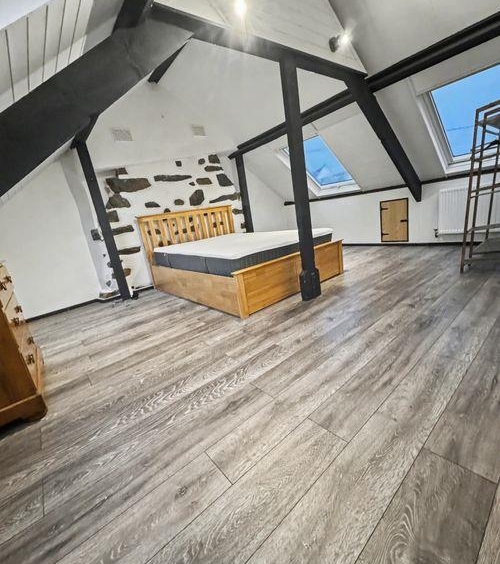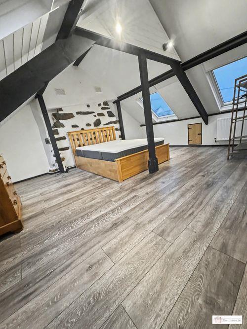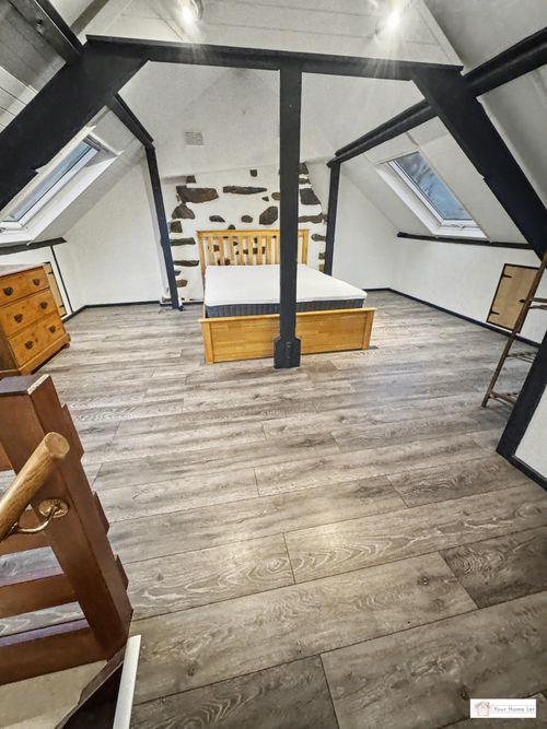 velux skylights.En-suite w/c, with hand basin & heated towel rail/radiator. Storage in attic eaves on both sides.