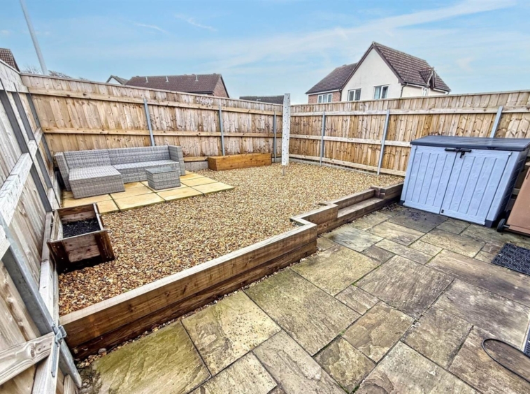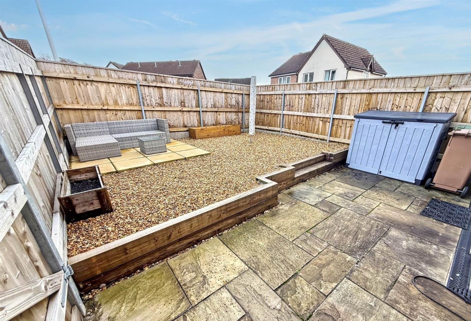 Private, low-maintenance rear garden with patio